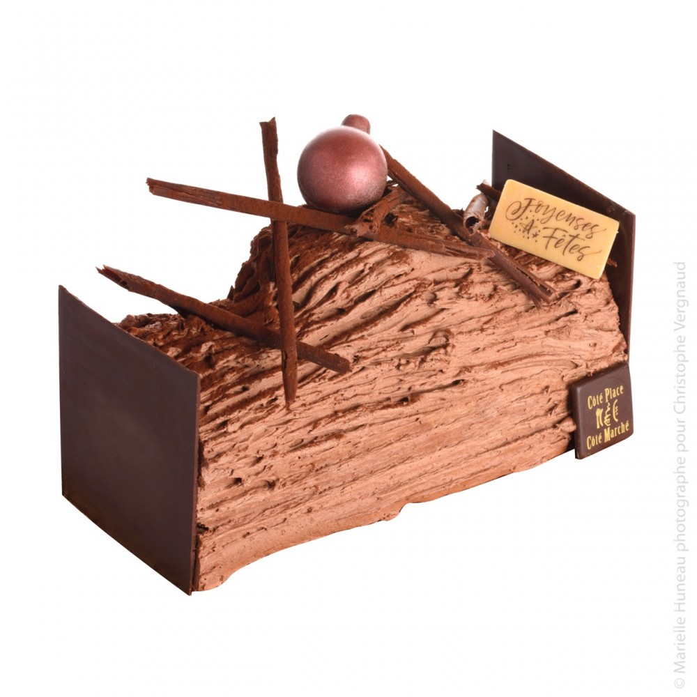Le retour à la tradition , cette délicieuse bûche crème au beurre aux 4 parfums au choix , chocolat , café, praliné et grand marnier et sa fameuse génoise moelleuse .