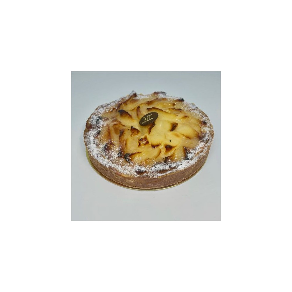 la traditionnelle tarte bourdaloue Alliance d'une pate sablée pur beurre AOP et d'un fruit rôti au four allégé par une crème d'amande